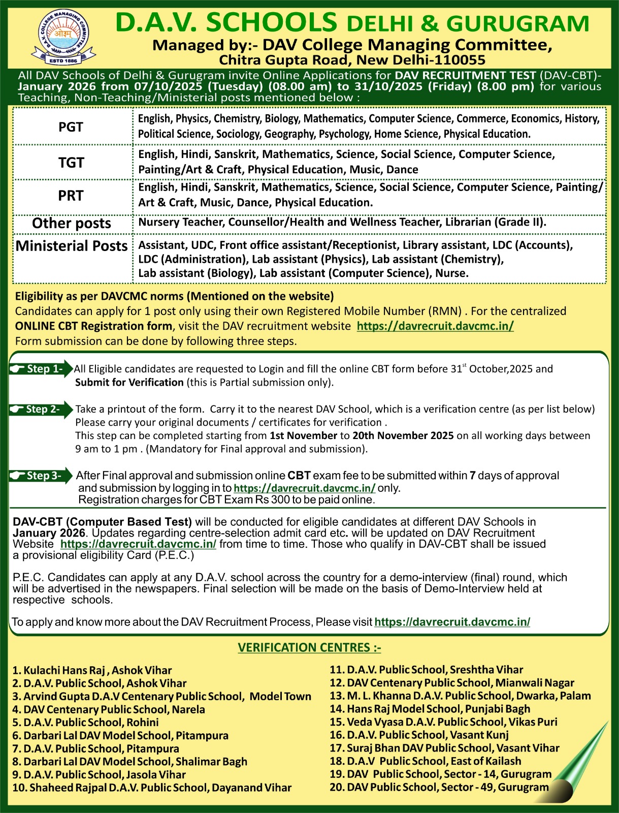 DAV STAFF RECRUITMENT : Phase-3 (Demo & Interview) Teaching & Non-Teaching Staff for the Academic Session 2025-2026 (View Notification)