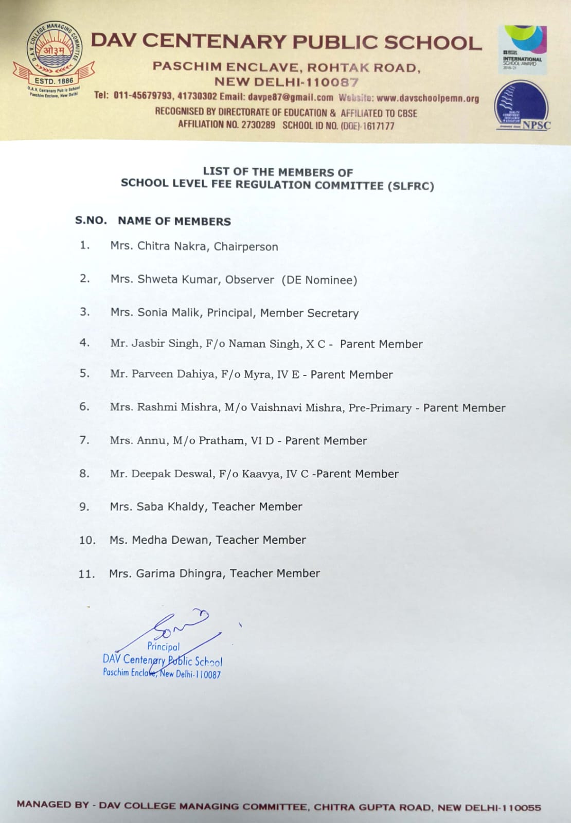 Circular No. DAV/PE/MN/2025-26/741 Dated:10/01/2026 regarding constitution of School Level Fee Regulation Committee (SLFRC) Session 2025-26 (View Circular)