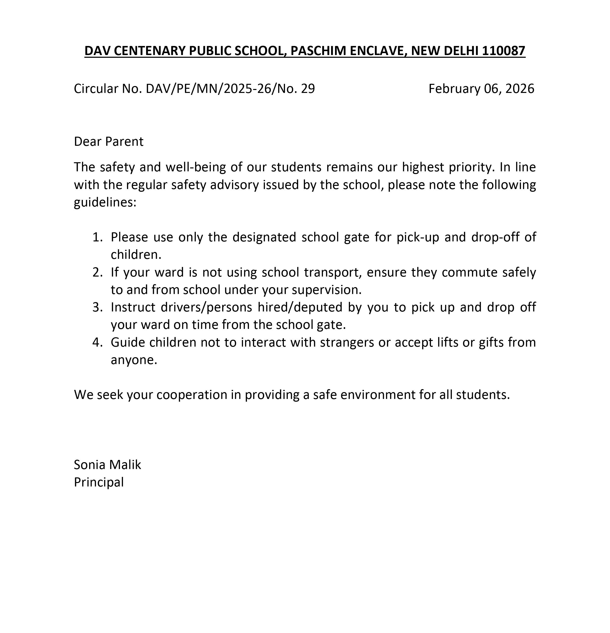 Circular No. 29 Dt. 06.02.2026 regarding safety and well-being of students (View Circular)