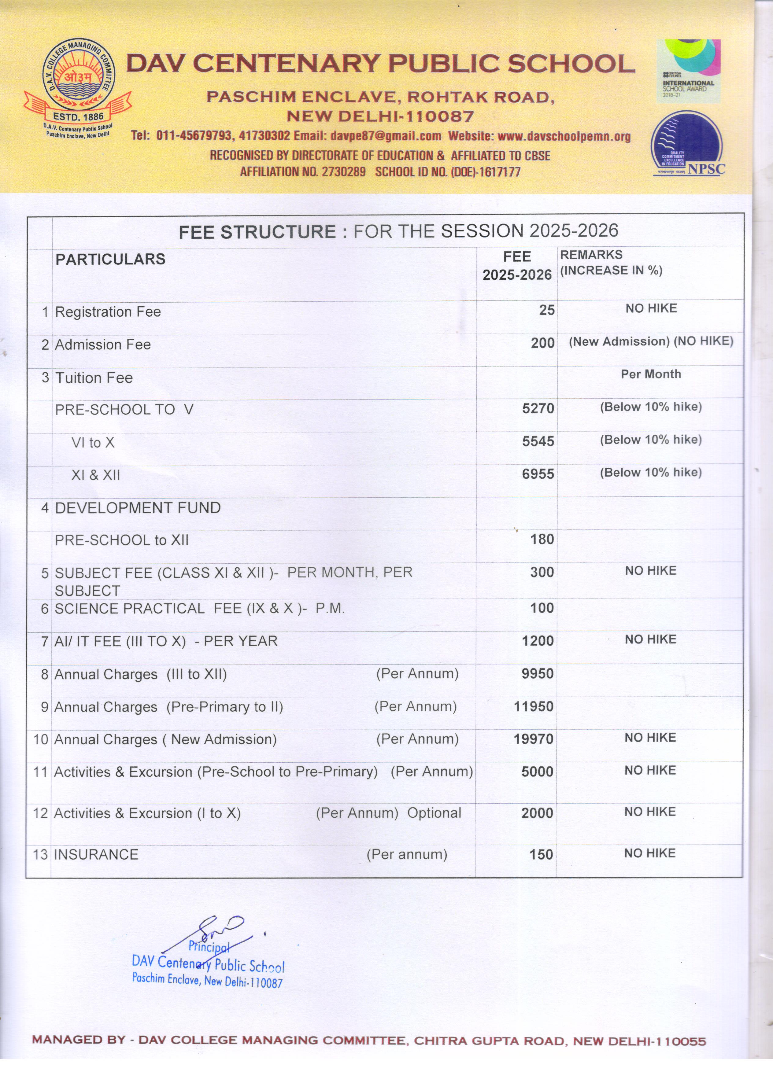 FEE STRUCTURE FOR THE SESSION 2025-2026